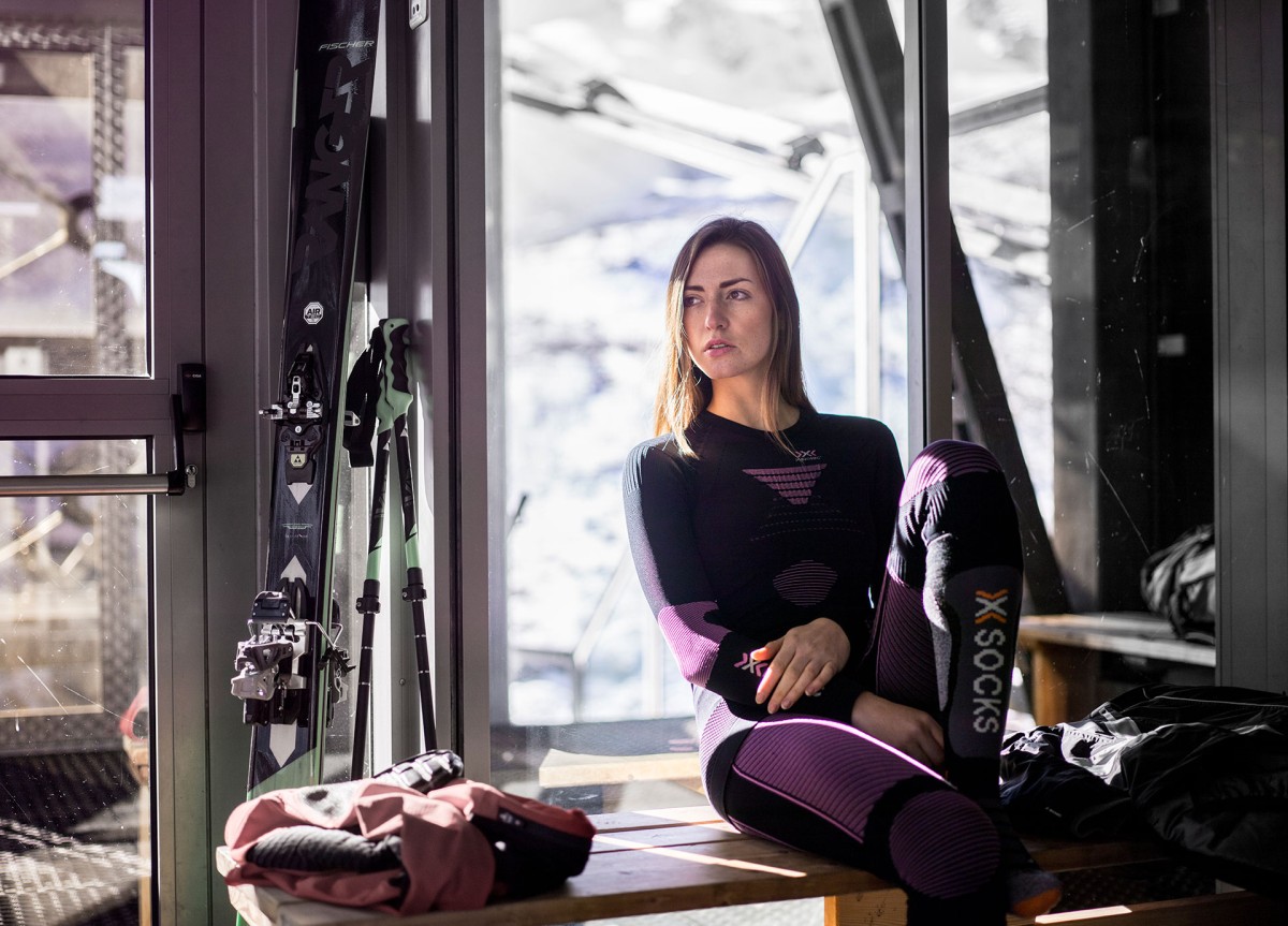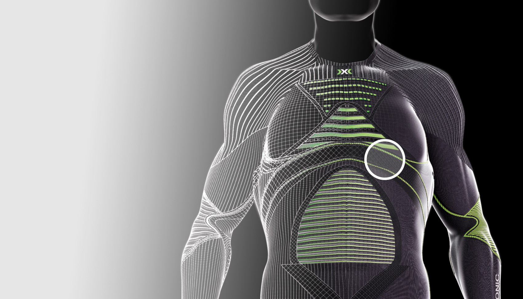 用到这种控温技术的典型场景之一就是:滑雪。滑下山坡时人体会发汗降温,而在山下等待电梯、缆车上山时,则需要衣物保暖。我们 X-Bionic®品牌发明的 Energy Accumulator® 聚能加强系列能很好避免与降低上述状况。