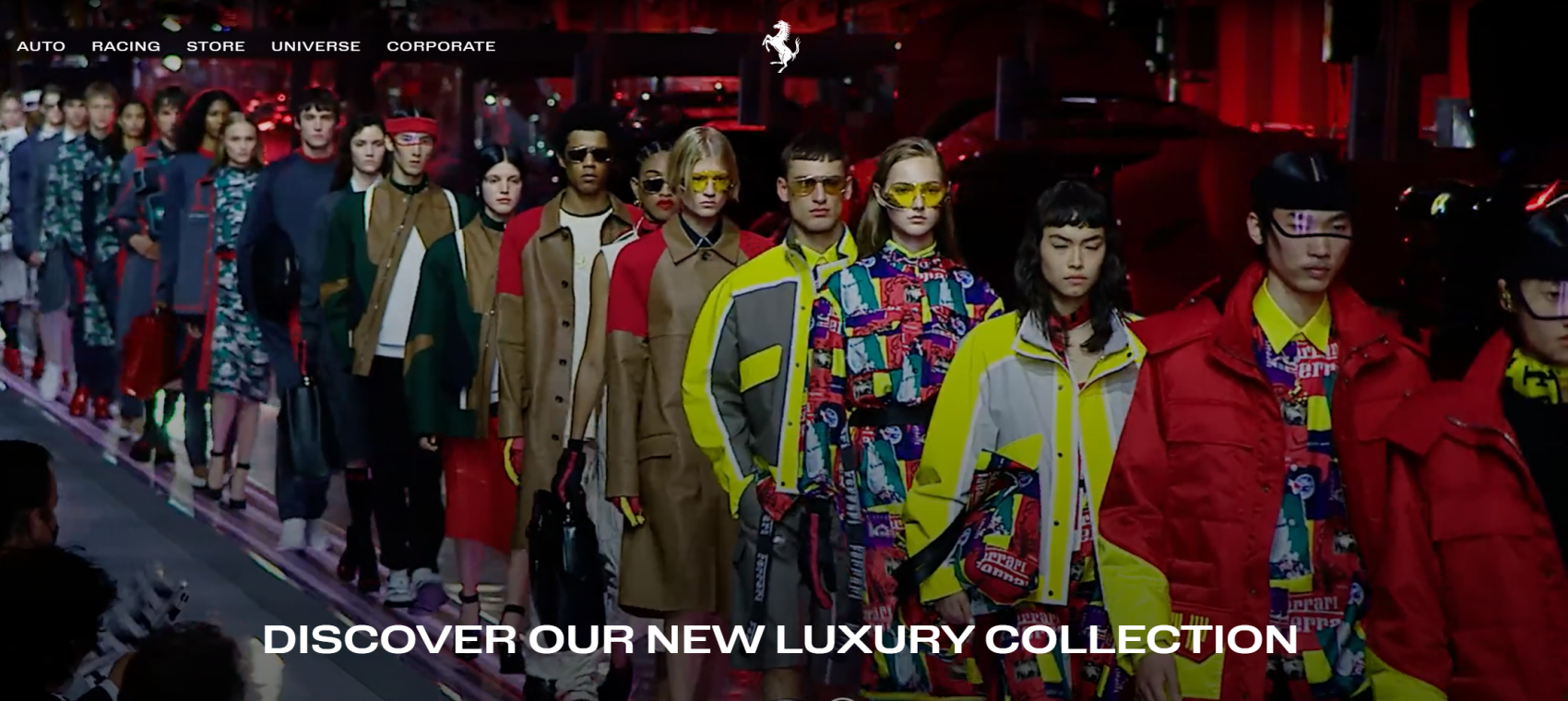 早在2015年,法拉利已经开始出售品牌时尚单品:如墨镜、手表、真皮夹克等。2019年,法拉利调整品牌商品策略,与意大利奢侈品集团 Giorgio Armani 合作,将旗下配饰系列(含手袋、服装)进一步推向高端市场,提供更多独家的意大利制造商品,向其作为豪华跑车的高端品牌形象靠拢。