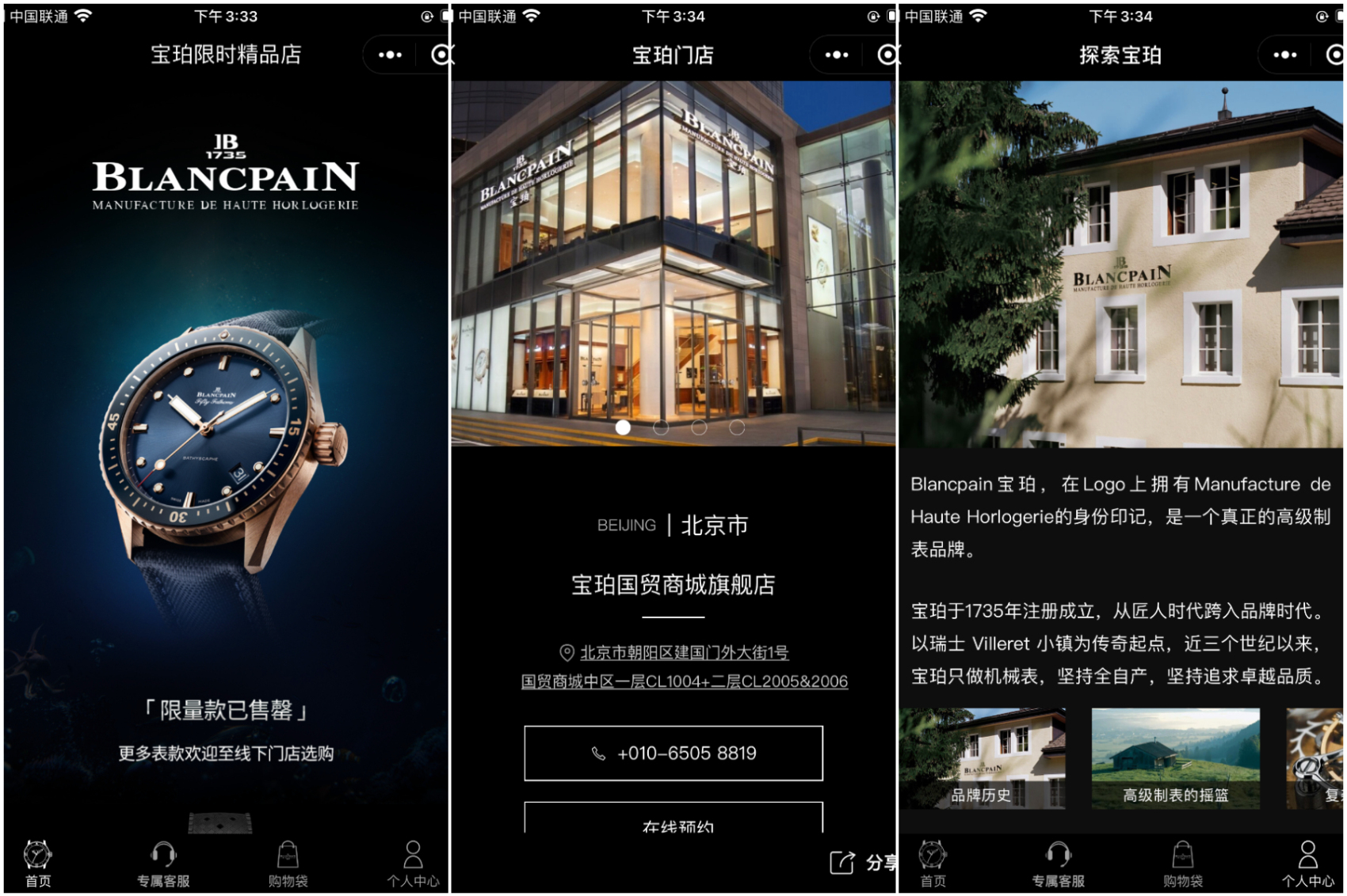 谈及这次的数字化尝试,廖信嘉认为,“微信小程序是品牌电商的开始,意味着作为宝珀这个顶级腕表品牌将开始建设品牌自己的电商平台。”