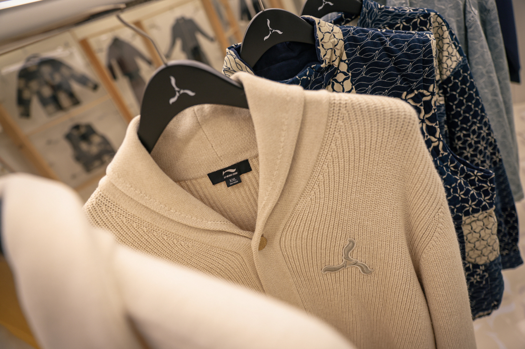 品牌在官方声明中介绍:新系列“以成衣的剪裁方式将运动与时尚融合,并应用了古法蓝染、宋代彩陶等中国传统设计元素”。以中国古法印染工艺“蓝染”为灵感设计的“蓝系列”,成为询问度最高的成衣单品。李宁方面介绍,其中的老花款外套和马甲在试营业期间就已售空。