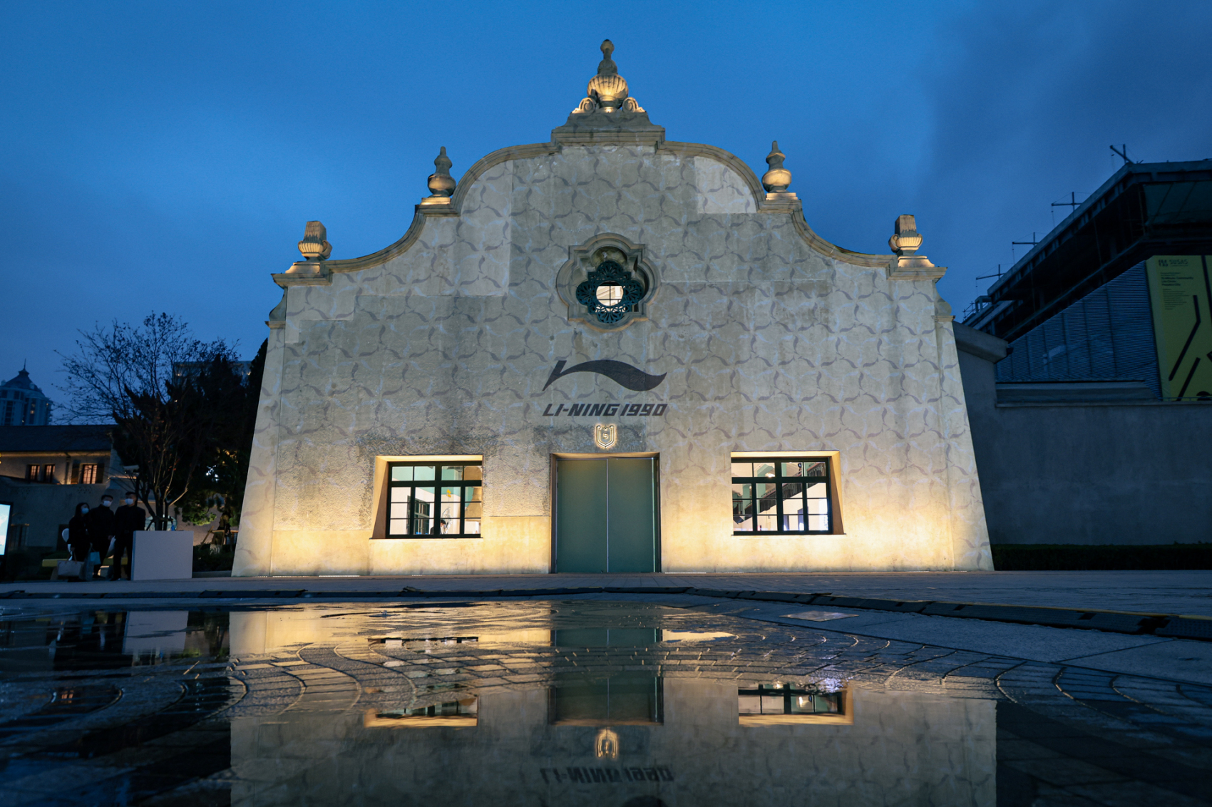 在上海地标式建筑——上生新所,活动当晚建筑外立面的整面墙打上了1990品牌的logo,十分醒目,隔着一条弄堂有路人在问:今天是在办李宁的活动吗?