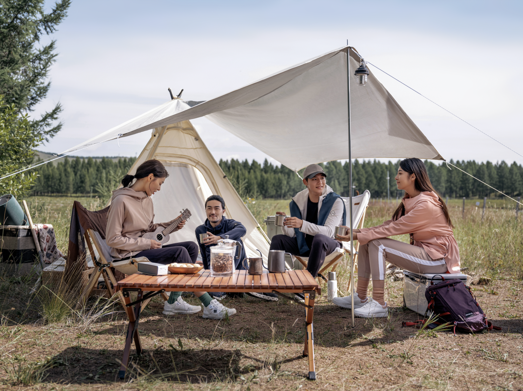在这股露营风潮中,最早进入中国市场的国际户外品牌之一KOLONSPORT可隆是一股不容忽视的重要力量。创立于1973年,以绿色为基本色调,以常青树为品牌标志的可隆主打轻户外生活方式,在高品质的高端服饰之外,也拥有精致丰富的露营产品线。