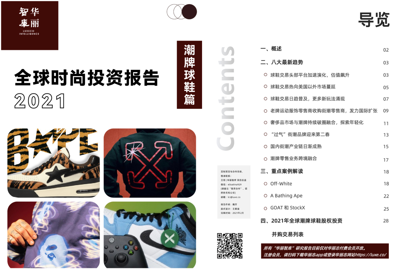 通过系统梳理这29个最新案例,剖析各标的企业创业及发展历程、商业模式、业务特色、最新动向及投资者背景,【华丽智库】发布的《2021全球时尚投资报告——潮牌球鞋篇》将为大家展示2021年全球潮牌球鞋市场八大最新趋势: