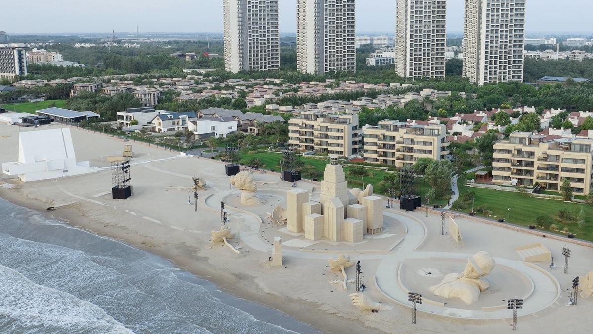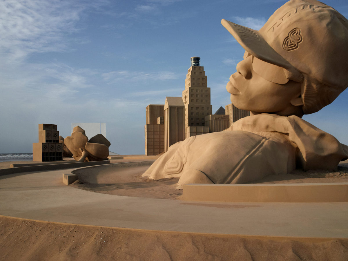 也正是在这片沙滩上,路易威登平地而起搭建起了规模惊人的成片主题装置,包括城堡、人像等等,这些装置的照片早在活动前就频频见诸于各大社交媒体。