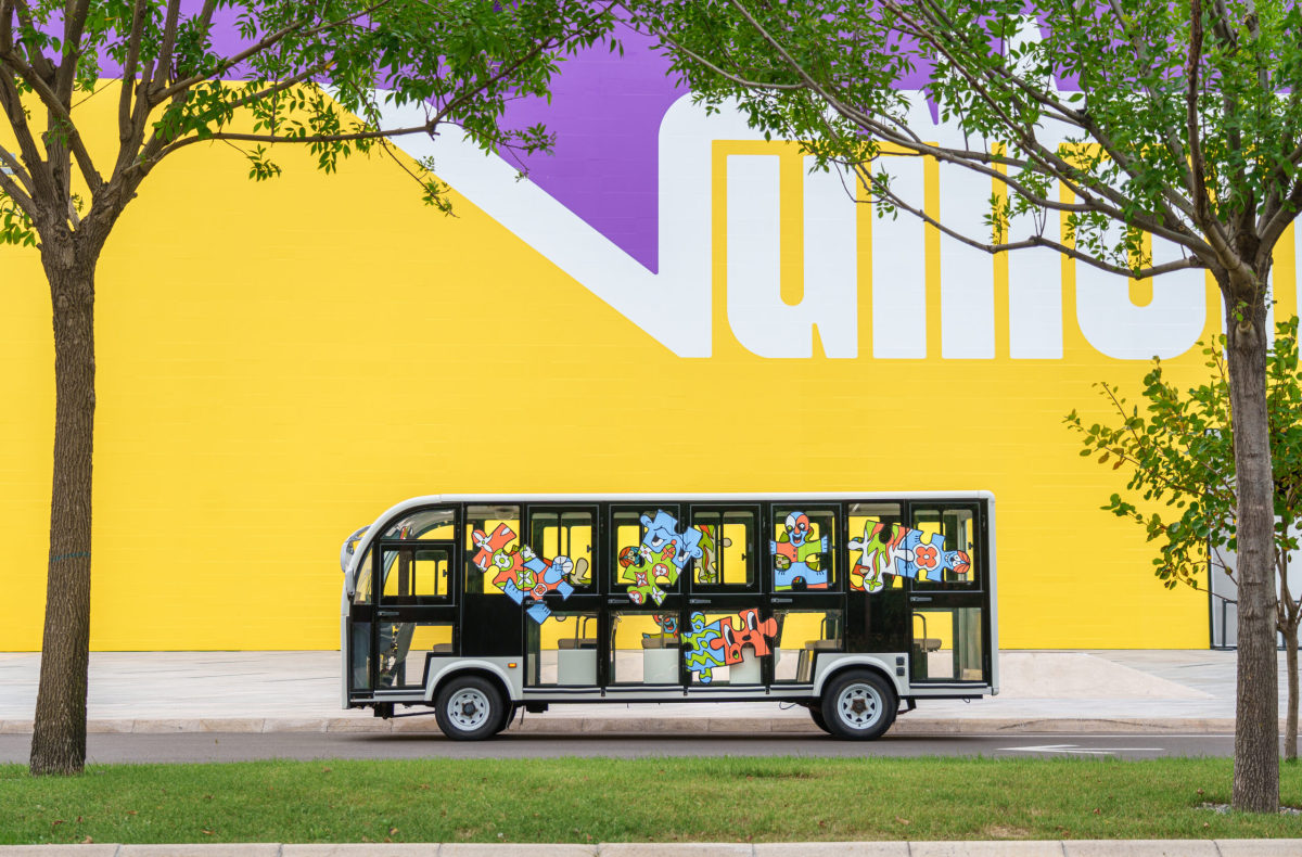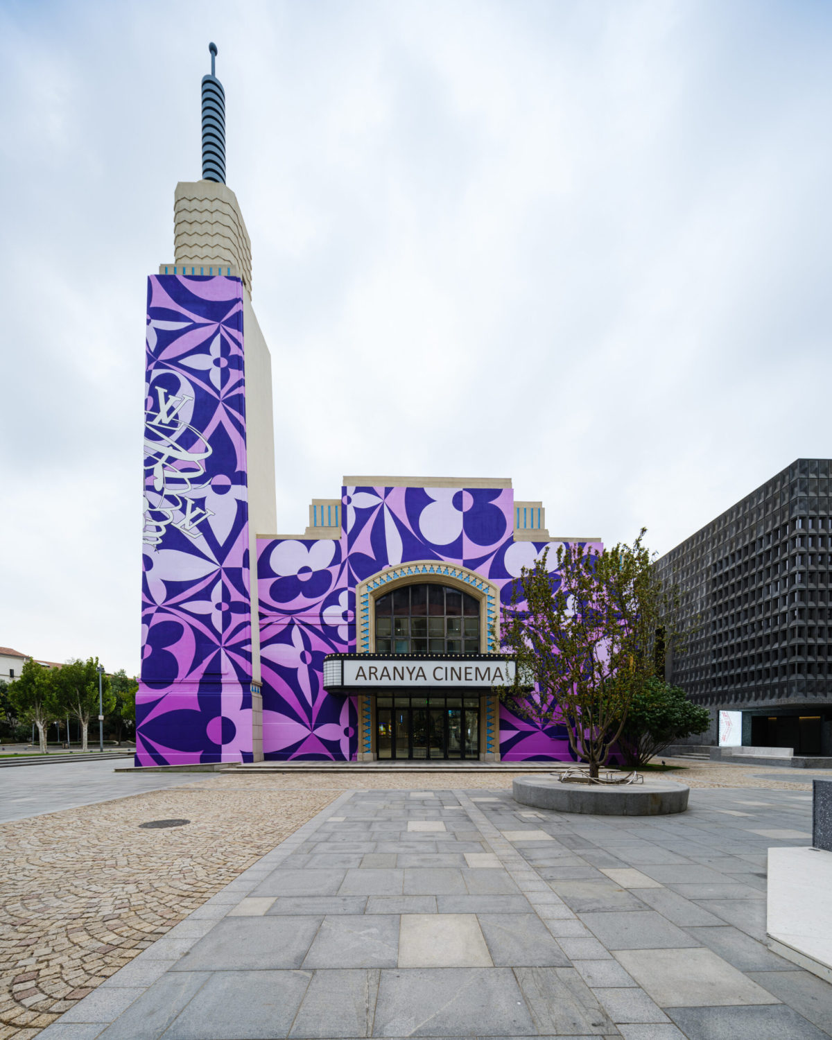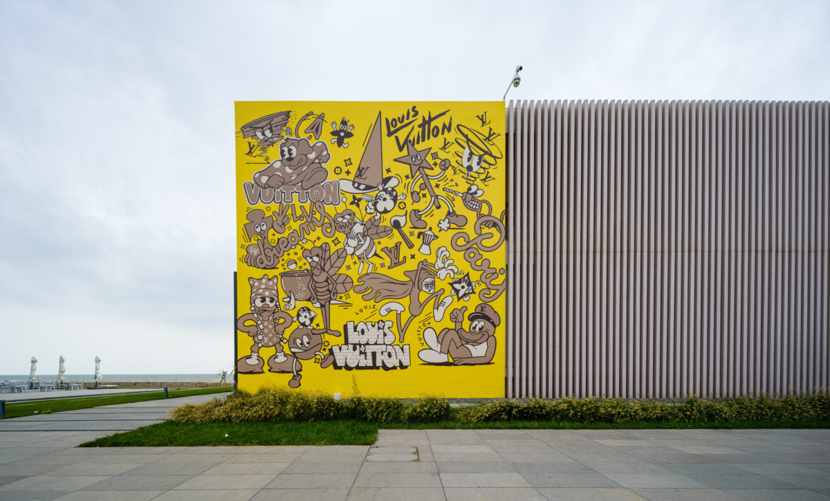 时装秀期间,路易威登为阿那亚社区内的主要地标建筑打造了充满意趣的视觉创意:阿那亚电影院手绘外墙、酒神剧场与A剧场外立面彩绘、定制接驳车与站台、路旗、十字路口地面彩绘等。由此将阿那亚的公共文化建筑转变成为一种当代的品牌符号,非常具象地让品牌与在地空间发生链接。