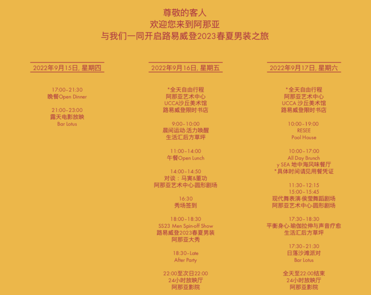 再到本次大秀,路易威登在阿那亚小镇的建筑、街道、车站都包裹上品牌标识符号,将这里变成了为期两天的“LV小镇”。未来,相信逐渐会有更多品牌挑战尝试更大规模的在地活动,以此实现对品牌声量和形象的高效大幅提升。