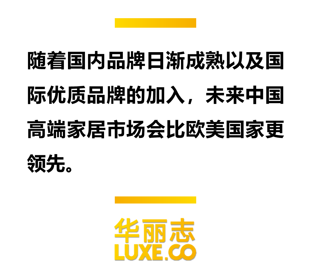 林晓伟:我非常看好中国市场,它的体量足够大,也因如此,市场上的品牌和产品参差不齐,需要一些时间迭代更新。我相信,随着国内品牌日渐成熟以及国际优质品牌的加入,未来中国高端家居市场会比欧美国家更领先。