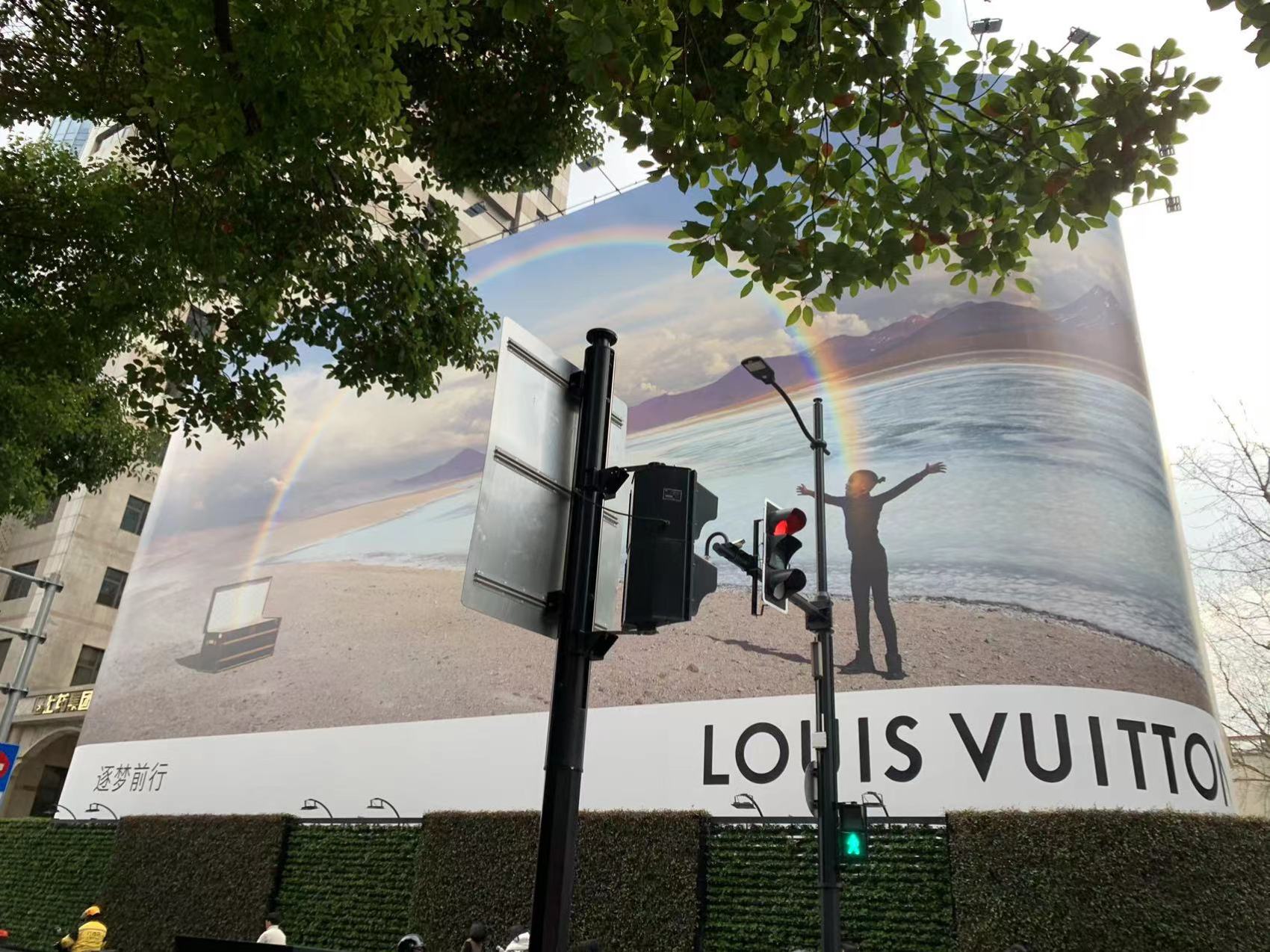 如果你最近路过上海新天地,在马当路和兴业路路口一定会留意到 Louis Vuitton(路易威登)的一面巨幅户外广告:一只 Louis Vuitton 硬箱串起了整个画面,打开硬箱,绚烂的彩虹架起了半边天桥,无拘无束的孩童站在彩虹的一端张开双臂,引人无限遐想。