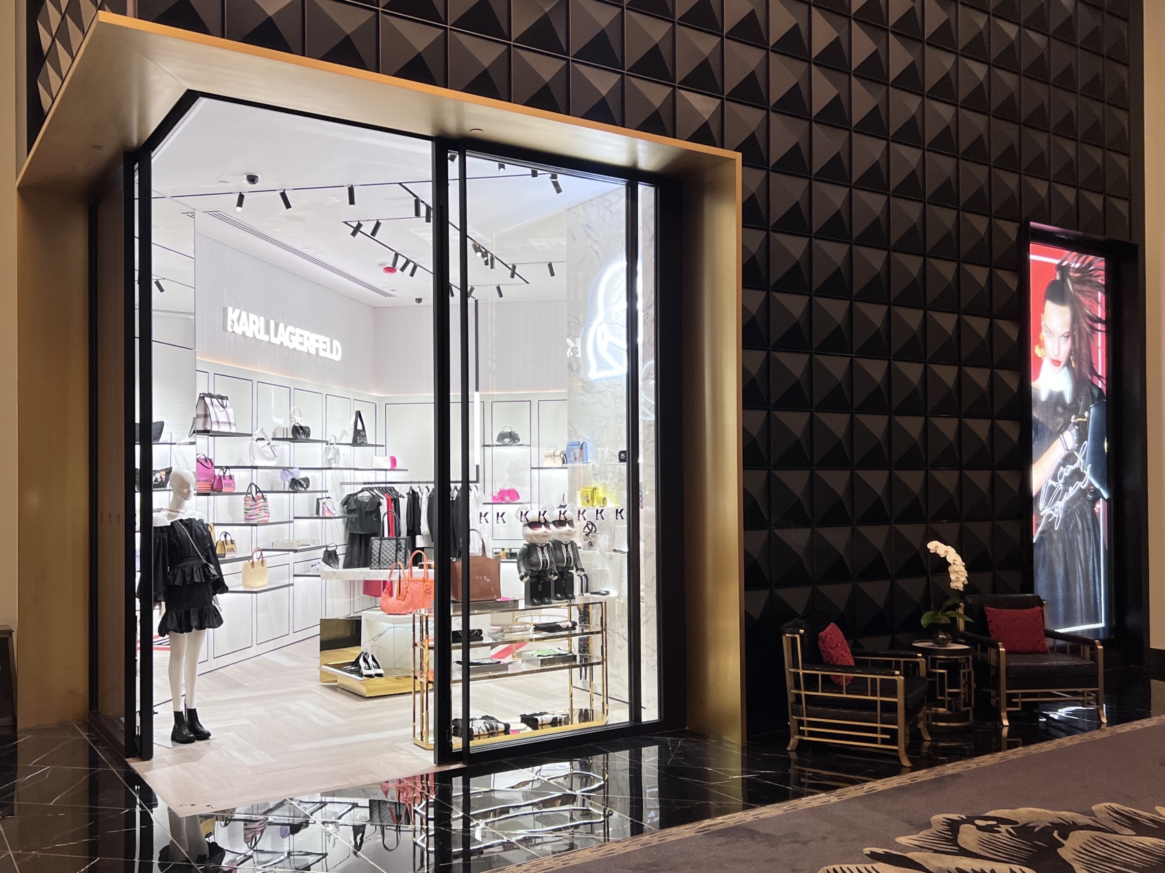 值得一提的是,酒店内开设了 KARL LAGERFELD 澳门首家精品店(下图),在选品上更偏手袋配饰系列,以迎合澳门旅游休闲的消费环境。