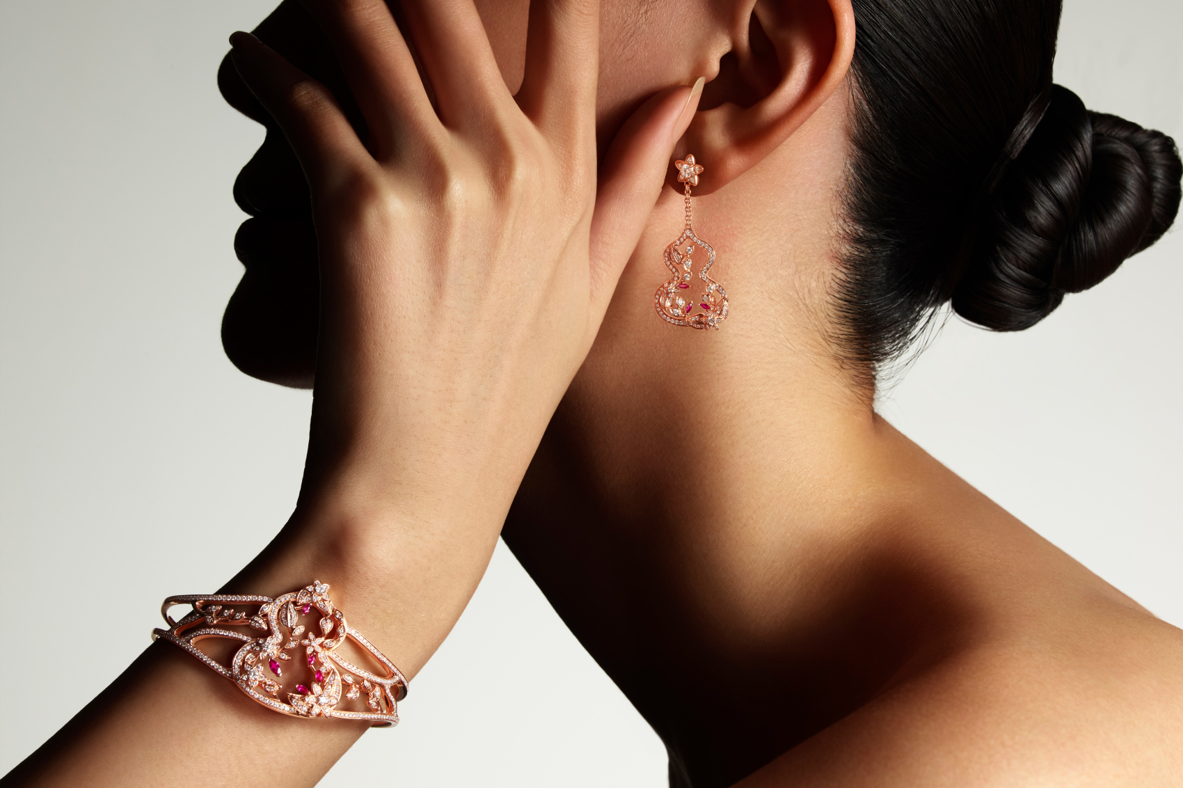 2018年,品牌还推出了葫芦形切割的Wulu钻石系列。要让钻石的形状看起来像葫芦,需要更多的切面。经过十年探索和多方尝试,才实现了这样的独特切割。这也是行业内首次对最坚硬的宝石——钻石进行如此特殊的切割。
