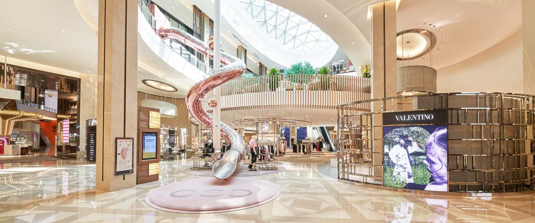 这里云集了Bvlgari宝格丽,Valentino华伦天奴,Moncler盟可睐、Qeelin麒麟珠宝、Montblanc万宝龙、Zegna杰尼亚、Emporio Armani安普里奥·阿玛尼、Bally巴利、Versace范思哲、Max Mara麦克斯.玛勒、Polo Ralph Lauren拉夫劳伦、Chloe 蔻依、Coach蔻驰、Tory Burch汤丽柏琦、Kering Eyewears开云眼镜和Sunglasses – Generic眼镜集合店,共16家奢侈品门店。