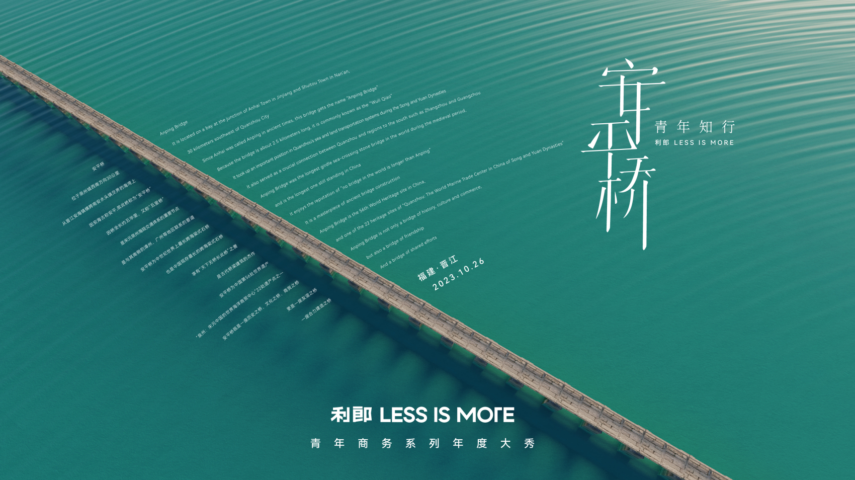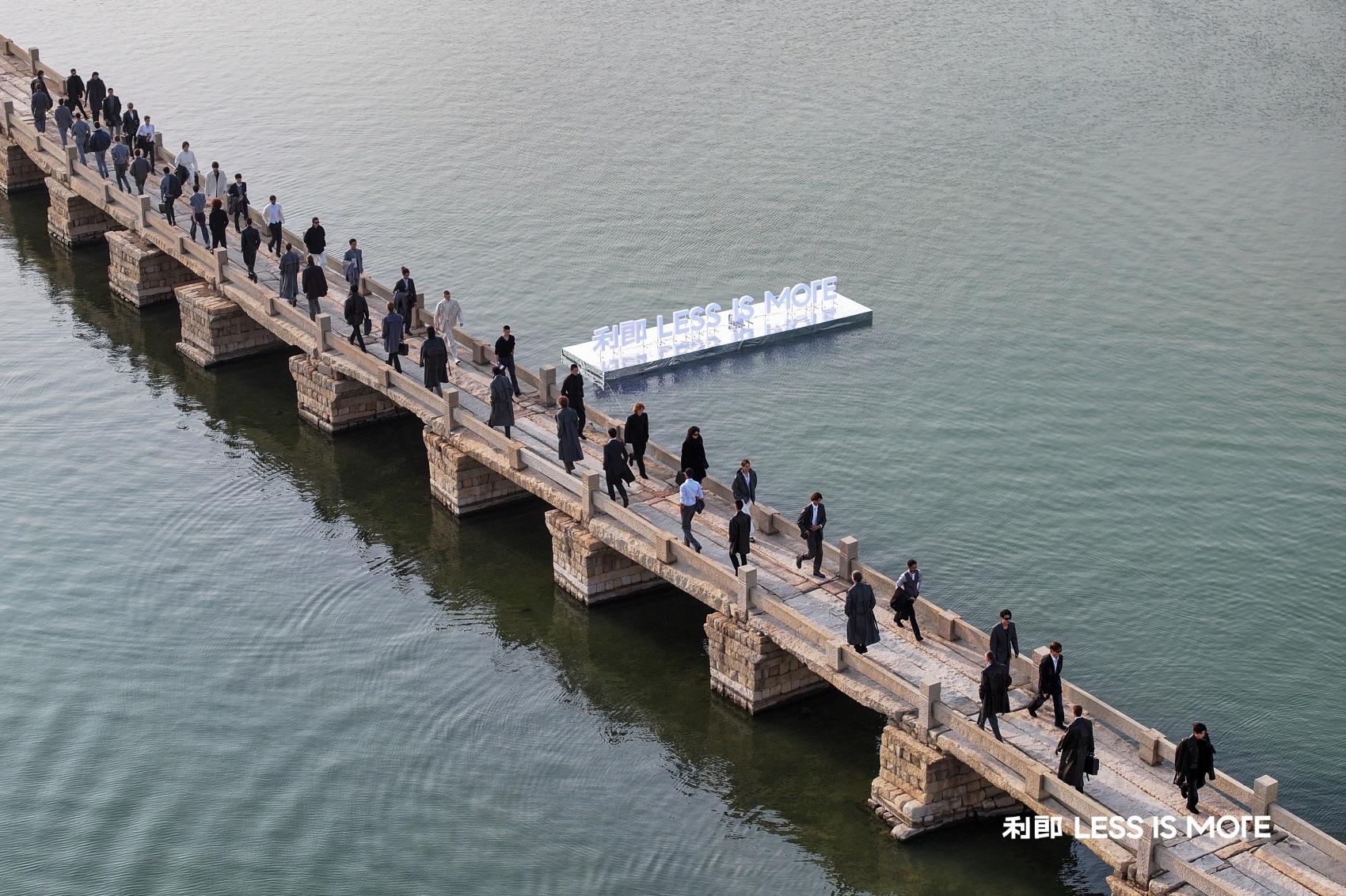 多年来利郎以“简约不简单”、“LESS IS MORE(少即是多)”的品牌形象和理念贯穿始终,深入人心。在安平桥上,利郎找到了简约美学在历史深处的共鸣,从中汲取灵韵,以白色为主色调,黑色突出轮廓,调和灰色为辅,极简、柔和。单纯的方圆、素色、质感,来呈现留白所传达的意境美,即东方境界的诗意表达。