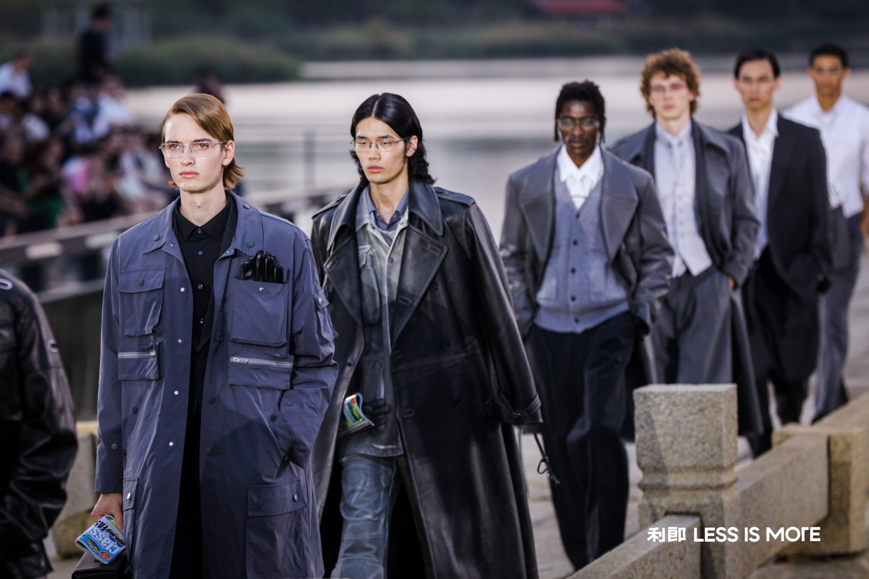 客座设计师周翔宇这样阐述本场秀款设计的灵感和理念:在安平桥上,以现代极简中的摩登来呼应宋代极简下的隽永。箱型轮廓的风衣、西装、夹克、连体衣都是对于比例、线条、表面和结构的痴迷。通过在复杂的艺术性和纯粹的朴素性之间取得微妙的平衡,以呼应新极简主义对于“少即是多”的创造性探索。