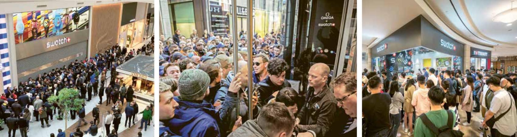 自2022年,Swatch 品牌与斯沃琪集团旗下的高级腕表品牌 OMEGA(欧米茄)的联名,让全球的Swatch门店都掀起了排队抢购的热潮,Swatch品牌也再度成为全球制表业最热门的话题之一。
