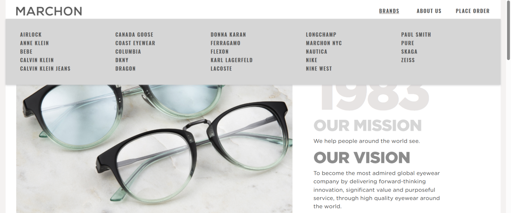 Marchon Eyewear 成立于1983年,是美国乃至全球最大的眼镜制造商之一,在全球 20 多个国家/地区拥有 2700 多名员工。公司在纽约、阿姆斯特丹和中国香港设有三个地区总部。Marchon 的主要设计中心位于纽约和意大利的普奥斯达尔帕戈。此外,公司还在香港、东京、瑞典和南加州设有卫星设计办公室。其负责授权设计制造的眼镜品牌如下: