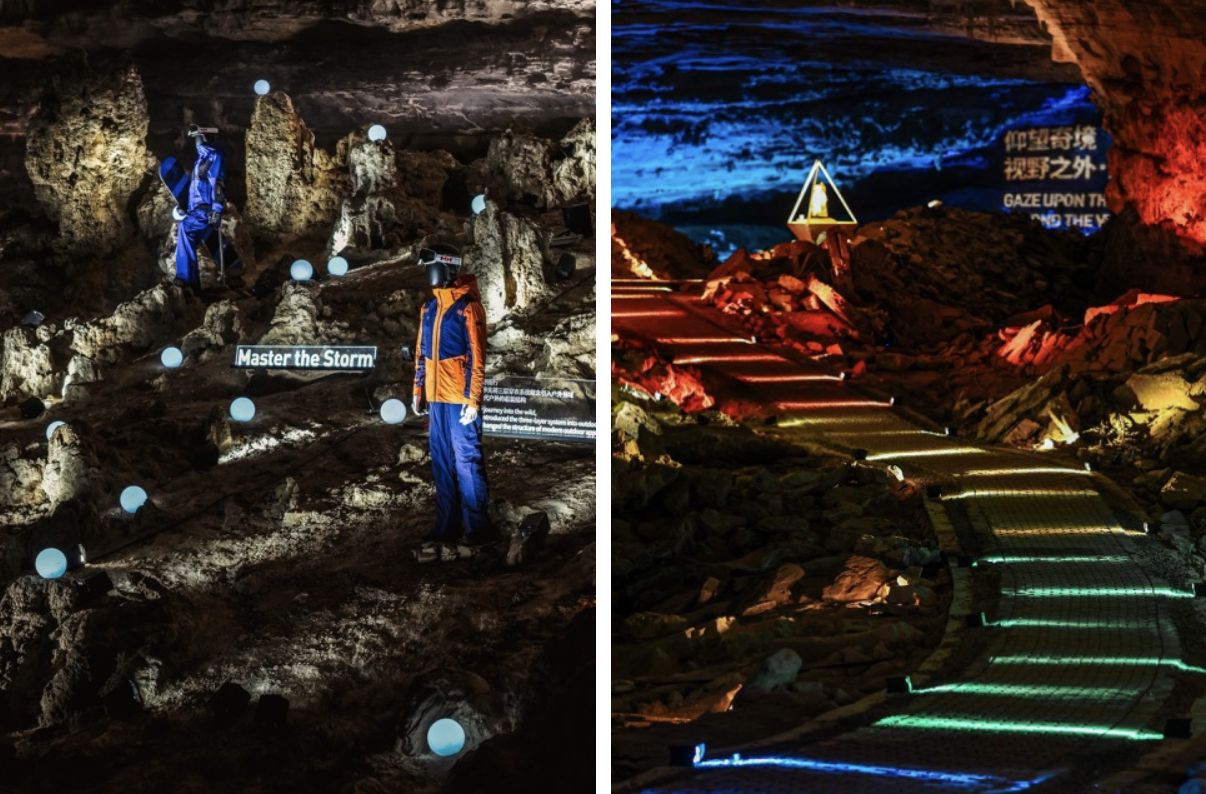 HELLY HANSEN 全球品牌代言人王一博身着 ODIN 奥丁系列冲锋衣,与洞穴专家共同为户外爱好者解读地心构造、洞穴生态等探索知识。品牌好友们则穿着ODIN奥丁系列,体验了双河洞洞穴徒步、地下裂缝、飞拉达攀岩、绳降等探险项目。