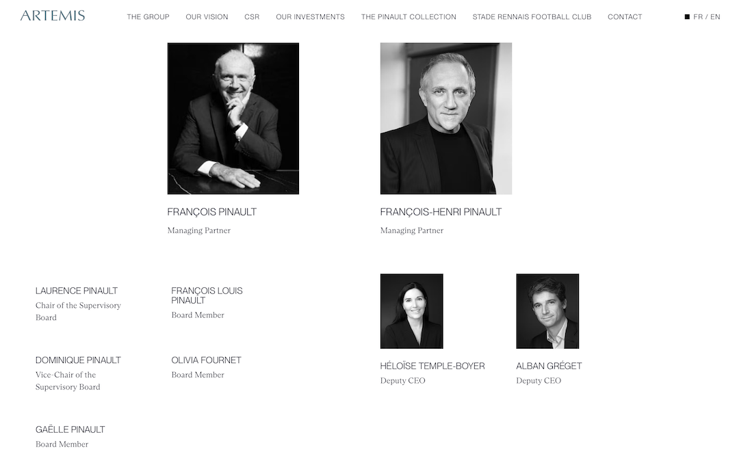 值得一提的是,Artemis 不仅调整了投资策略,还引入了更多 Pinault 家族成员进入董事会,包括: