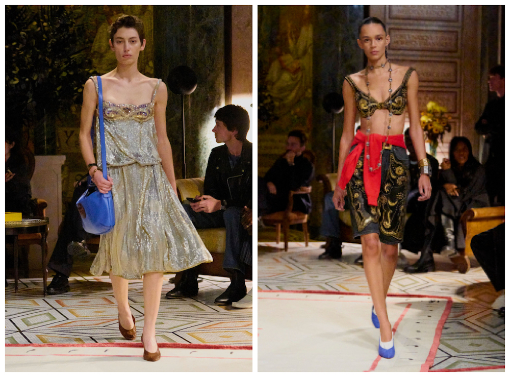 值得一提的是,本季强化“可持续高级手工”概念,本季银饰部件均与贵州非遗工坊和苗族银匠传承人合作打造。面料方面,则选用再生真丝、有机棉和植物染牛仔。