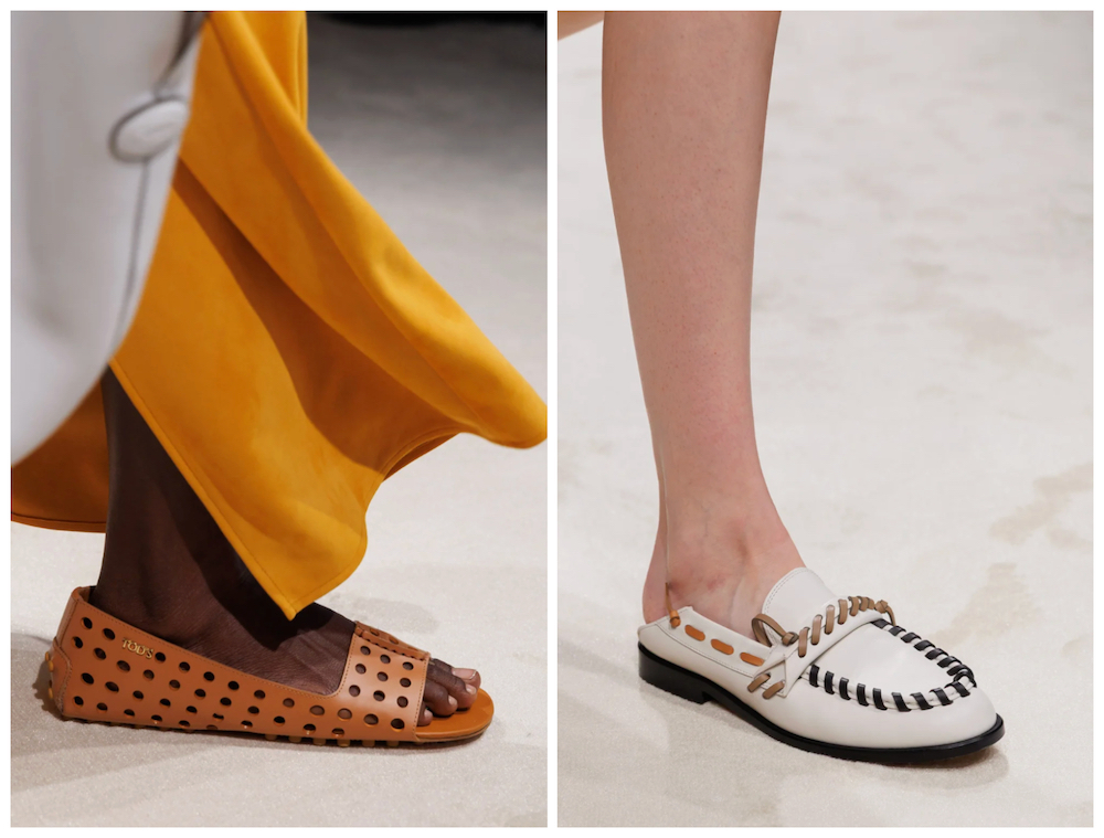 鞋履部分,除了经典款豆豆鞋,本季推出全新露指豆豆鞋款式;新一季乐福鞋在保留意式优雅传统的基础上,以多彩皮革缝线再现新意。
