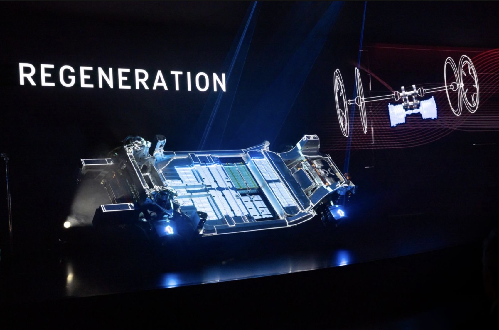 副车架与底盘的连接系统经过巧妙设计,将后轴、悬挂部件和电池整合在同一个承重结构中,方便各部件单独维修。此外,主动悬挂系统的逆变器直接置于副车架内,利用其自身重量便可实现隔振效果,从而避免额外增加被动式部件。