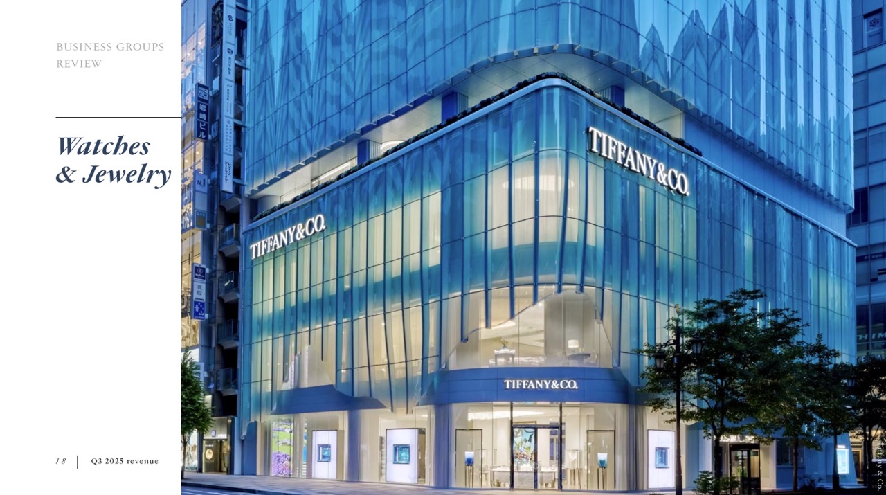 Tiffany & Co. 持续强化其标志性系列,并在全球推广以纽约旗舰店“The Landmark”为灵感的新店概念。米兰与东京新店客流与营收表现亮眼。品牌以设计大师 Jean Schlumberger 著名胸针为灵感推出的新作“Bird on a Rock”首发即大获成功。