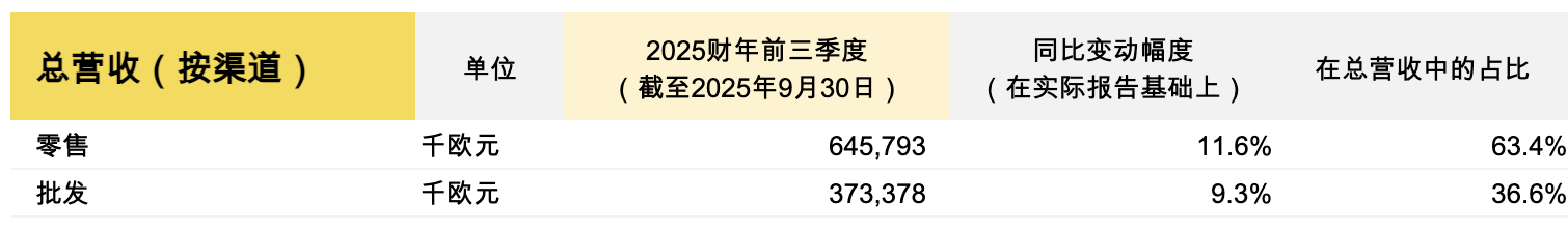 10月16日收盘后,意大利奢侈品集团 Brunello Cucinelli 公布了经董事会审查后的截至9月30日的2025财年前九个月业绩数据:总营收同比增长10.8%至10.192 亿欧元(按固定汇率计算:+11.3%),与两周前公布的初步数据一致(详见链接)。