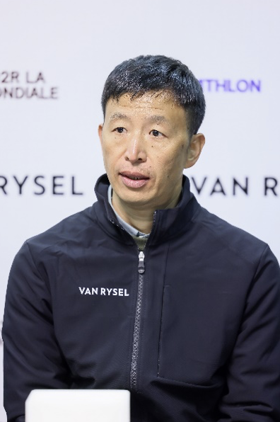 在发布会环节,迪卡侬 VAN RYSEL 品牌北亚区总监赵跃武先生(下图)对迪卡侬 AG2R 车队取得的优秀成绩表达祝贺,并表示:
