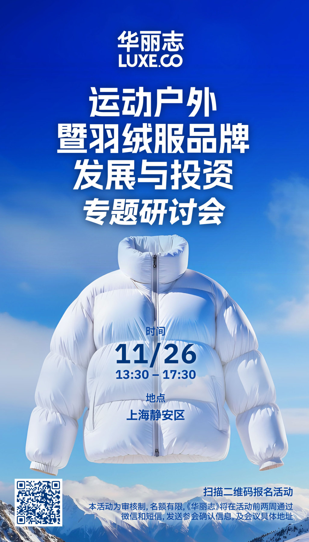 2025年11月26日(周三),华丽志将在上海举办专题研讨会,解读运动户外暨羽绒服品牌发展与投资的最新趋势。