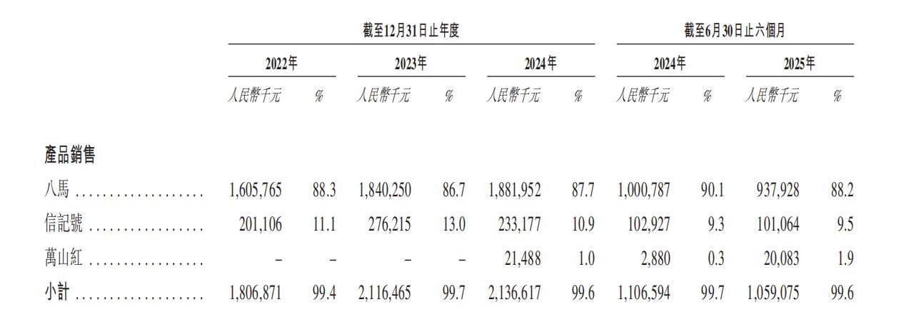 八马茶业的产品组合主要包括茶叶产品(乌龙茶、红茶、黑茶、白茶、绿茶、黄茶等)、茶具和茶食。公司拥有核心品牌“八马”以及子品牌“信记号”(专注于高端年份普洱茶)和“万山红”(专注于年轻消费者及女性消费者的多口味茶饮)。
