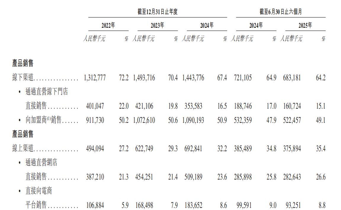 - 线下渠道:是营收的主要来源,2024年贡献了67.4%的营收。截至2025年6月30日,共有3585家线下门店(244家直营店,3341家加盟店),覆盖中国内地所有省份。其中,加盟模式是线下渠道的主力,2024年占总营收比重50.9%。