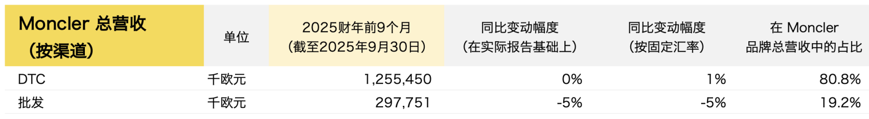 此外,Moncler品牌的批发渠道还拥有 49家品牌专柜(SiS),较2025年6月30日净减少5家。