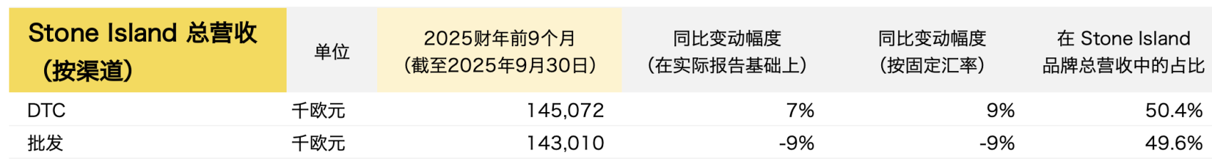 此外,Stone Island品牌还经营 11家单品牌批发门店,与2025年6月30日持平。