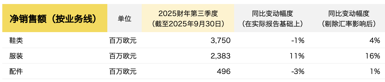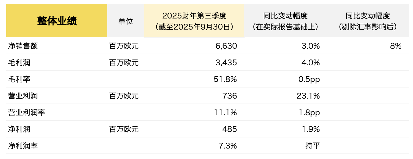 截至9月30日,adidas 2025财年第三季度关键财务数据如下: