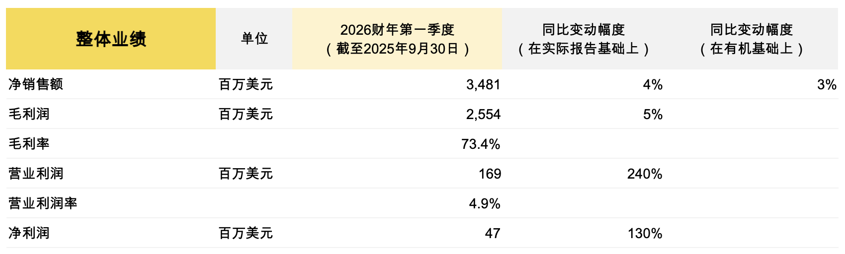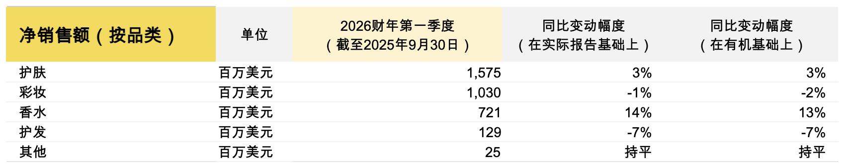 截至2025年9月30日,雅诗兰黛集团2026财年第一季度财务业如下: