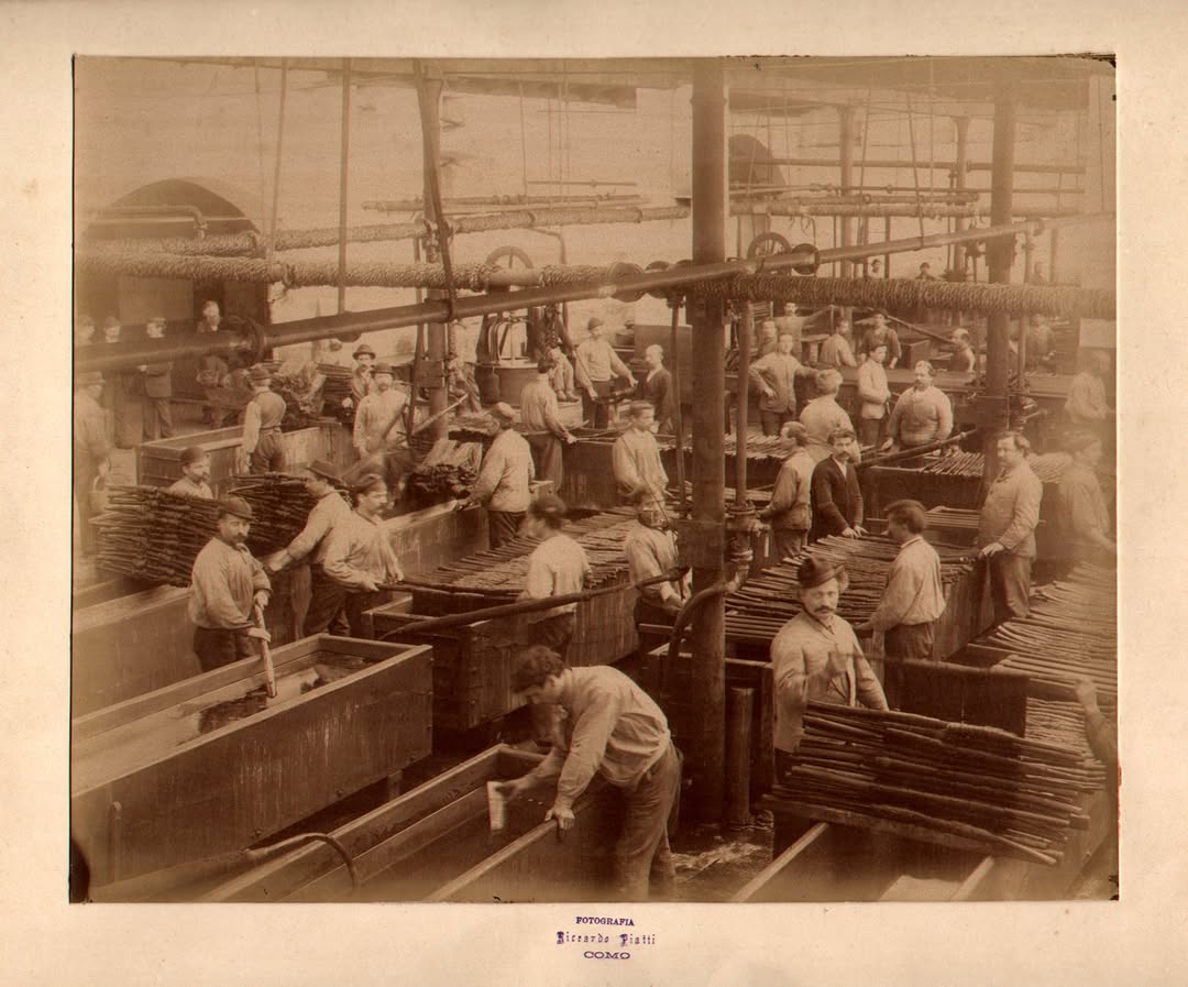 到1870年代,在科莫的推动下,意大利的生丝产量已经远超欧洲其他国家,全球产量仅次于中国。19世纪末至20世纪初,工业革命下机械织机的普及,极大地扩大了蚕丝产量和市场覆盖率:1904年,科莫拥有近8000台织机,占全意大利织机总数的82%。同时,Mantero、Seteria Bianchi、Frey、Ratti、Clerici Tessuto 等一批丝绸制造企业开始涌现。
