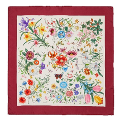诞生于1966年的 Flora花卉图案丝巾,是古驰最具代表性的设计之一,最初为致敬摩纳哥王妃而打造。当时,Rodolfo Gucci希望为王妃献上一份特别的礼物,而Vittorio Accornero de Testa在短短一周内便完成了这件精美佳作。这款丝巾由27种花卉为主体,搭配浆果、蝴蝶和昆虫组成了田园美景;共运用了37种颜色,每一种颜色均需经由独立印染工序。这一经典主题设计的影响力迅速扩散,并于1969年衍生出首款古驰桑蚕丝连衣裙。多年来,历任创作总监均从个人视角诠释Flora花卉图案的主题,于隽永魅力中融入新的创意。