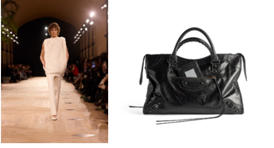 巴黎世家独立展台上的黑色 Le City First 手袋,出自创意总监Pierpaolo Piccioli任职后设计的首个系列,并于2025年10月4日在开云集团巴黎总部举办的发布秀上首次亮相。该手袋承启了历任创意总监的设计语言与巴黎世家的当下,生动见证了跨越时空的风格对话。Le City First手袋象征着巴黎世家融合实用精神与精致魅力于一体的双重身份,不仅是配饰,更是品牌叙事中不断演进的鲜活载体。