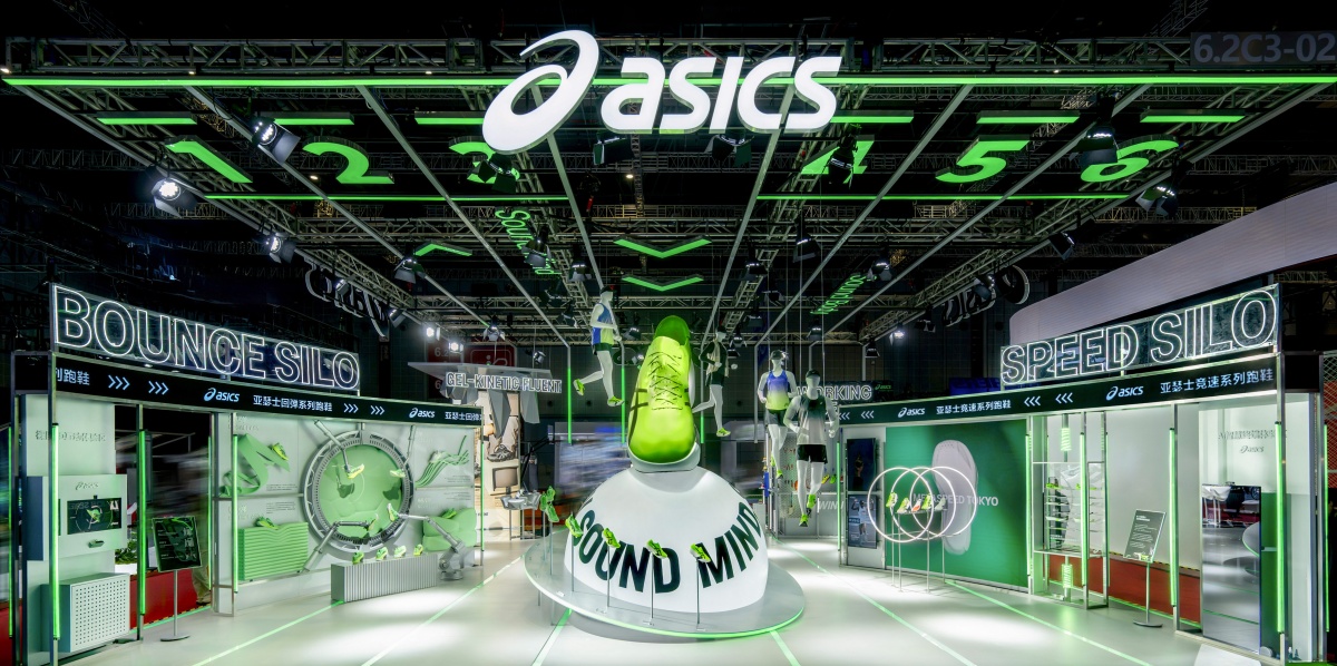 今年是 Asics(亚瑟士)第六次参展,品牌以赛道为灵感搭建展台,全方位呈现在专业跑步、运动科技、可持续发展与潮流生活方式领域的前沿成果。