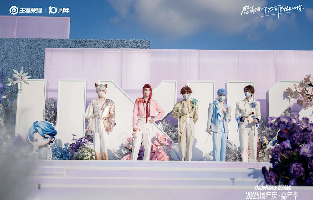 5)在王者荣耀10周年之际,服装品牌 Louis Shengtao Chen(陈盛韬)为王者荣耀期下虚拟偶像无限王者团设计10周年造型。