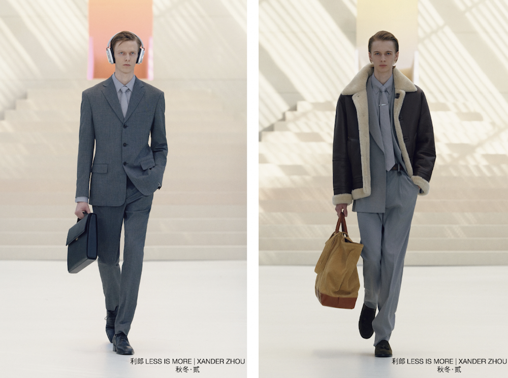 1)设计师周翔宇(Xander Zhou)与中国男装品牌利郎 LESS IS MORE 在上海鲁迅公园发布又一次合作系列。该系列主题为「由石至形」,通过服装设计语言,将“仪式感”转译为“轻松的结构”,让形式超越装饰的范畴,表达当代都市男性在现实中的多重状态,同时回应了利郎 LESS IS MORE 的多场景化布局。