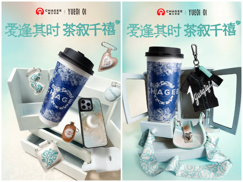 6)服装品牌 YUEQI QI(戚玥琪)与茶饮品牌霸王茶姬共同打造「千禧美学限定联动周边」,周边产品共包含:手机壳、扣针徽章、衣服挂件、丝巾耳机包。