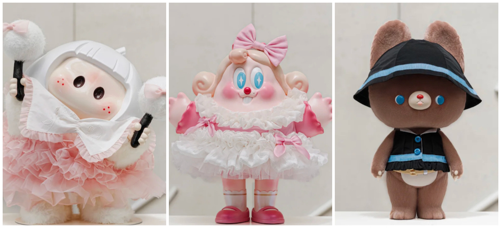 8)服装品牌 Reverie by CarolineHú(胡颖琪)为名创优品(Miniso)旗下原创潮玩IP“萝卜街”、“右右酱” 与“KUMARU”设计了三套量身定制的特别款联名娃衣。