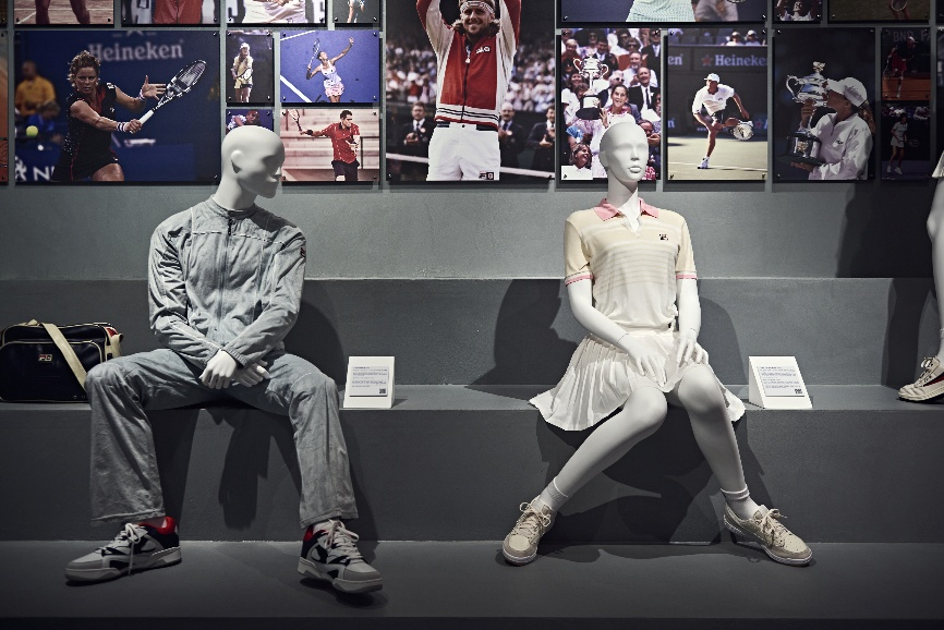 在“时光隧道”展区,观众可以领略 FILA 自1911年作为针织品制造商起步,到20世纪70年代在 Enrico Frachey 的领导下以网球为核心运动品类开启了迈向运动产品线的关键性转折,并记录了诸如与 FILA 品牌大使、瑞典传奇网球运动员比约·博格(Björn Borg)合作的标志性时刻。