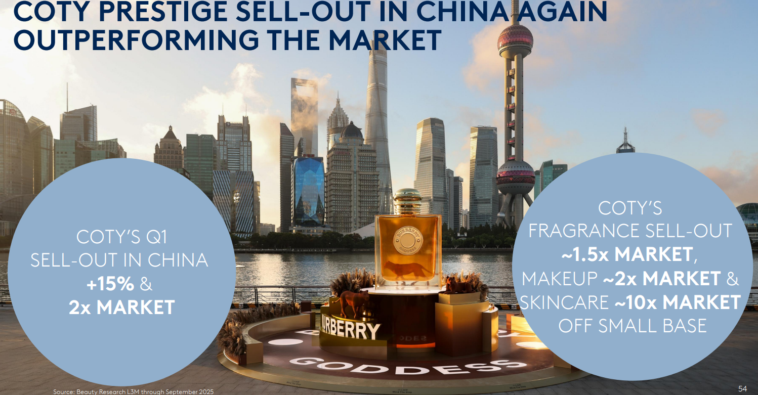- 与此同时,为充分发挥公司潜力,科蒂已启动对大众彩妆业务与巴西业务的全面战略评估。2025财年,大众彩妆业务销售额约为12亿美元,巴西业务销售额近4亿美元。Gordon von Bretten重返科蒂,出任大众美妆总裁,全面负责该业务板块,并已组建新的领导团队,致力于推动创新、强化品牌资产并增强消费者互动,以实现显著的营运改善。