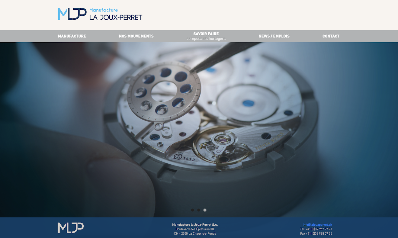 La Joux-Perret 专注于组装和修饰来自 ETA 的机芯毛坯(ebauches),并研发陀飞轮等高级复杂功能机芯,其前身为20世纪90年代在拉绍德封(La Chaux-de-Fonds)成立的 Jaquet-Baume,最初是公司创始人 Jean-Pierre Jaquet 的古董腕表及零件转售业务,后来曾为宇舶表(Hublot)等品牌提供腕表研发支持。