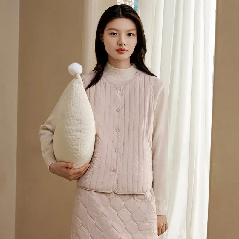 除外穿服饰外,丝绵也广泛应用于秋冬家居服领域。专业真丝家居品牌金三塔便推出了含丝绵夹层的家居服与背心,并形象称之为“行走的蚕丝被”。