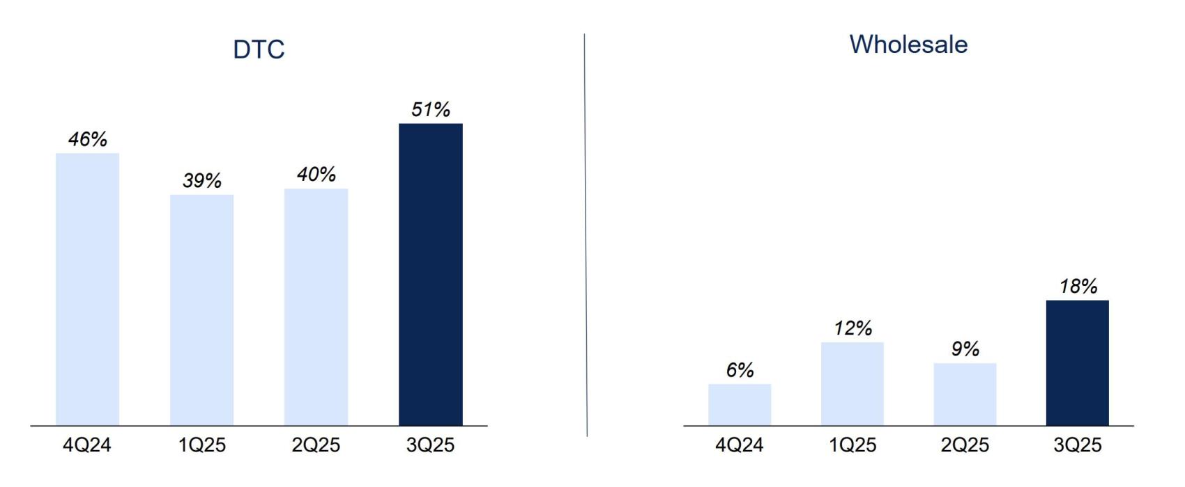品牌直营(DTC)渠道继续成为增长的核心动力。