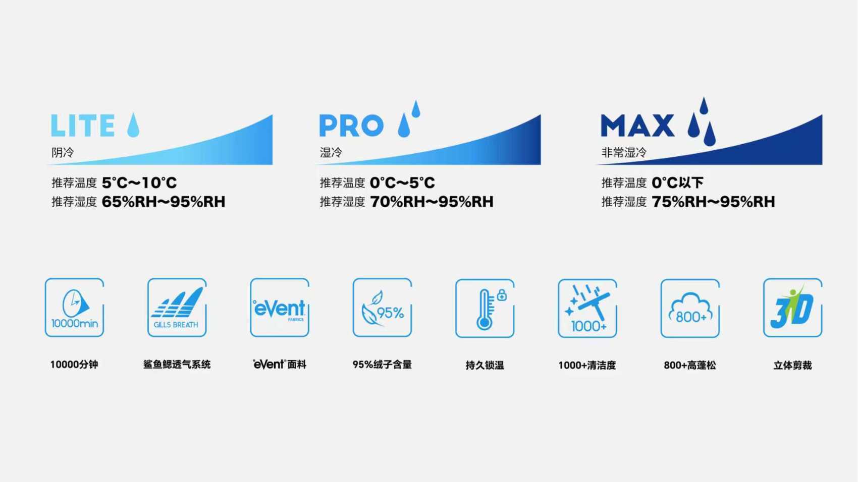 在现实生活中,消费者又该如何选择羽绒服,来抵抗不同程度的湿冷天气呢?
