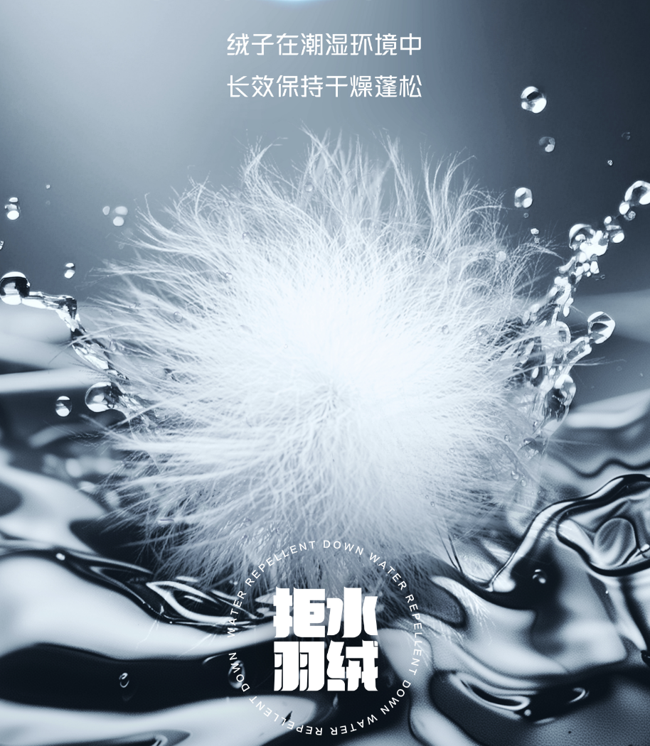 通俗地说,天然羽绒表面有一层疏水的油脂,传统羽绒为去除异味会清除这层油脂,但也让羽绒失去了疏水拒水的能力。只有经过新一轮的“拒水整理”,对羽绒进行后处理深加工,阻止羽绒被水润湿,恢复其拒水性能。