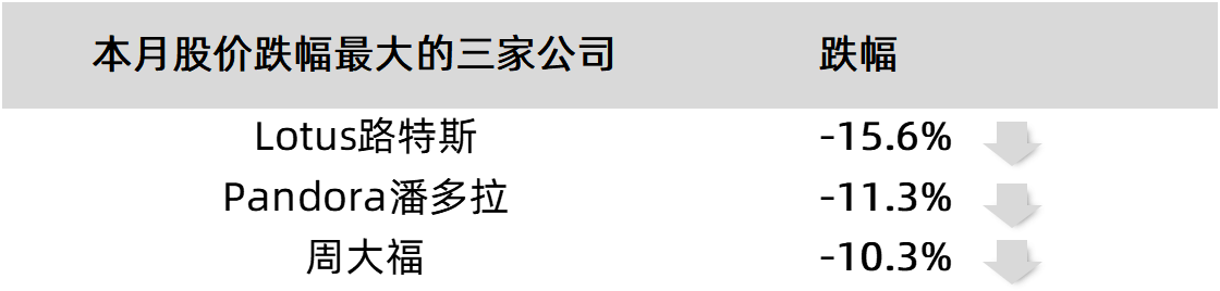 Ferragamo(+13.9%):本月,集团大股东、Ferragamo 创始家族的控股公司 Ferragamo Finanziaria S.p.A. 的最新估值约为5.1亿欧元。此次增资由菲拉格慕家族通过向 Sawa 转让其持有的 Ferragamo Finanziaria 16.75%股份的所有权完成(对应控股公司逾1600万股),家族仍保留这部分股份的30年用益权。